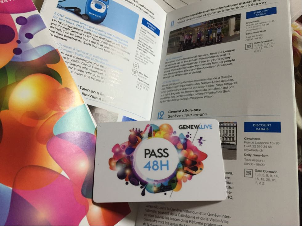 レマン湖畔を歩いて、それらしき所を探すけど、なんか違うヽ(;▽;)ノ えっと、また街の方に戻るのか…ヽ(;▽;)ノ 落ち着け、私にはgoogle先生が付いている!ヽ(;▽;)ノ 再び案内センターの位置を確認しながら街をウロウロ。あったー!ヽ(;▽;)ノ そこで受付のお姉さまにバウチャーを見せると、「中国語は読めません」またかー!ヽ(;▽;)ノ違うの、私は日本人!これはエクスペディアジャパンのバウチャー!ヽ(;▽;)ノ私、ジュネーブ2日間パス買ってるの!ヽ(;▽;)ノお願い、わかって!ヽ(;▽;)ノ 年上のお姉さまが交代して、バウチャーにあるバーコードを見て理解してくれたようで、パスポートとバウチャーバーコードを読み取って無事に手続き終了!2日間パスが発行されました!\(^o^)/