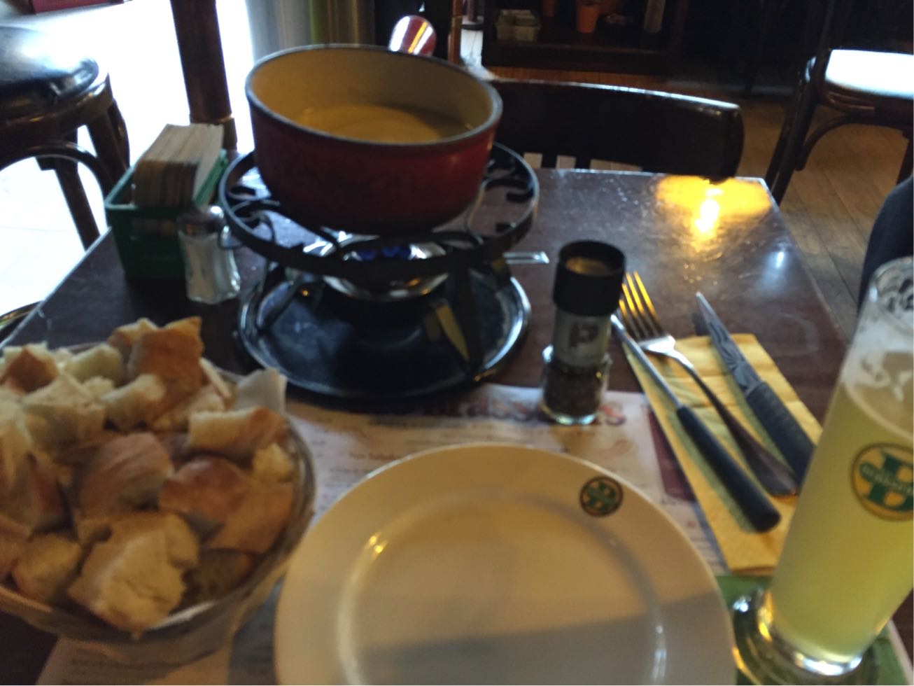 ビールは昼は出してないと言われたので断念してアップルジュースを注文。スープはとろみがあって、これも生クリーム入ってるのかな?コクがあってなかなか美味しかった\(^o^)/ 白身魚はフワフワで、ナイフなんて要らないくらい。下にほうれん草が敷いてあって、一緒に食べるとすごーく美味しかった!\(^o^)/