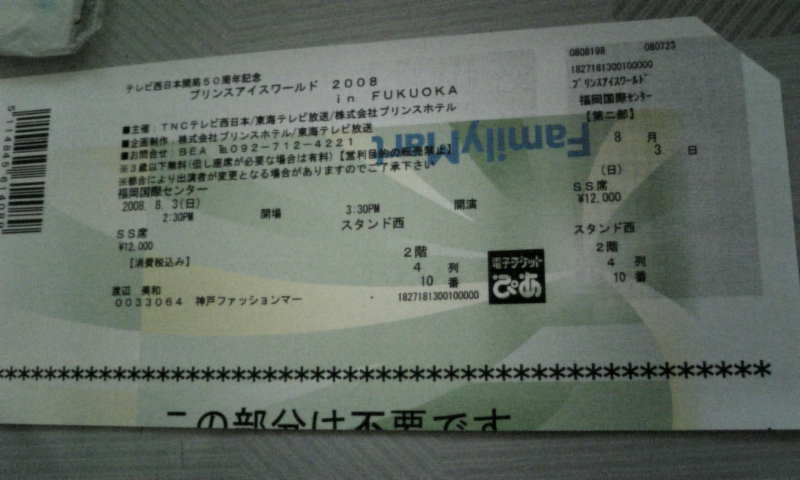 ちなみに私のチケット、ファミマのねーちゃんが用紙を逆さに入れたせいで、印刷が逆向き。キリトリが反対側のため、モギリのにーちゃんを困らせてしまいました(^_^;)。まぁ、これもいい記念だわ。