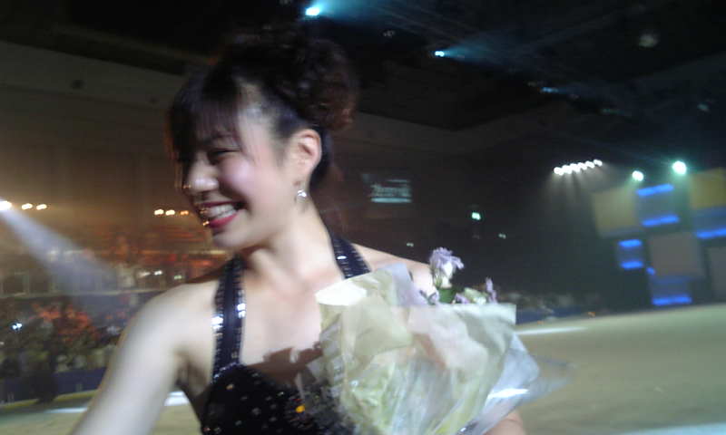 それから奈也ちゃん、昨シーズンのエキシでした。フリップで転倒しちゃいましたが、笑顔でリカバーです(^◇^)