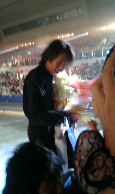 花売りのおねーさんの言葉に、ちょっとひっかかりを覚えています。「花束をお持ちのお客様のみ、好きな選手に直接手渡しできます」…のみ、ってさ~(>_<)いかにも「買え」って言ってるみたいでやだなあ…。私もしっかり買ってますけどね。