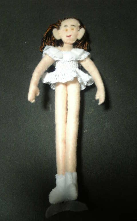 こちらはズボンがフェルト、上半身がレース編み+ビーズです。後ろ姿はこんな感じ。
