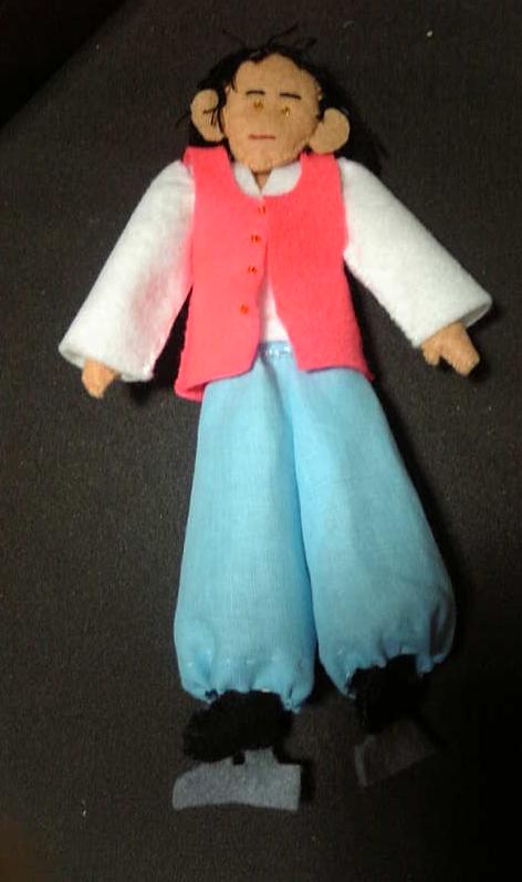 衣装の上半身はフェルト、ズボンはパッチワーク用の布を買ってきて作りました。