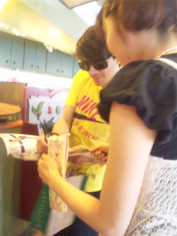 11時少し前、友人たちとスタバでブランチしていたら、11時20分くらいかな?ランビが現れてみんなプチパニック(笑)。私は堂々と話す勇気もなく、サインをねだる友人をダシにして写メ撮ってました。