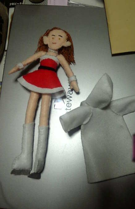 さて、やりましたよ!(^o^)丿しーちゃんサンタ人形出来ました!(^o^)丿