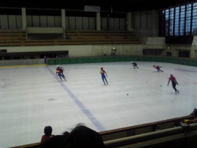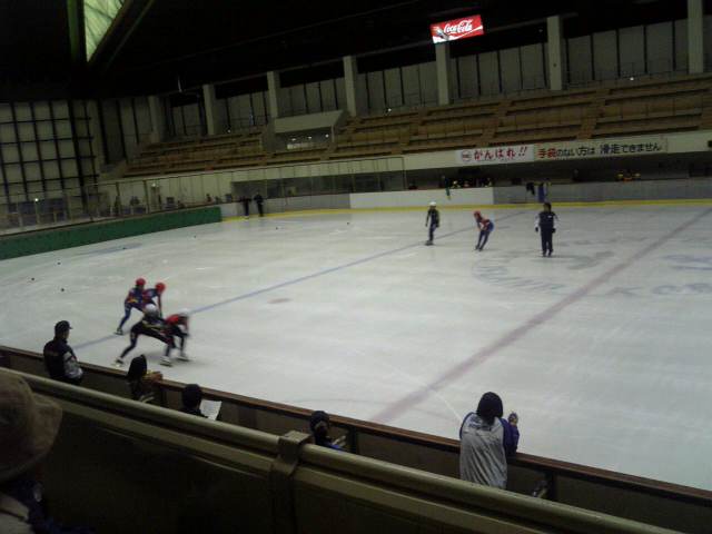 スピードスケートのエキシビション、中学生ともなるとかなり迫力。高校生にはオリンピック選手、一般にはワールドカップ出場選手もいます。