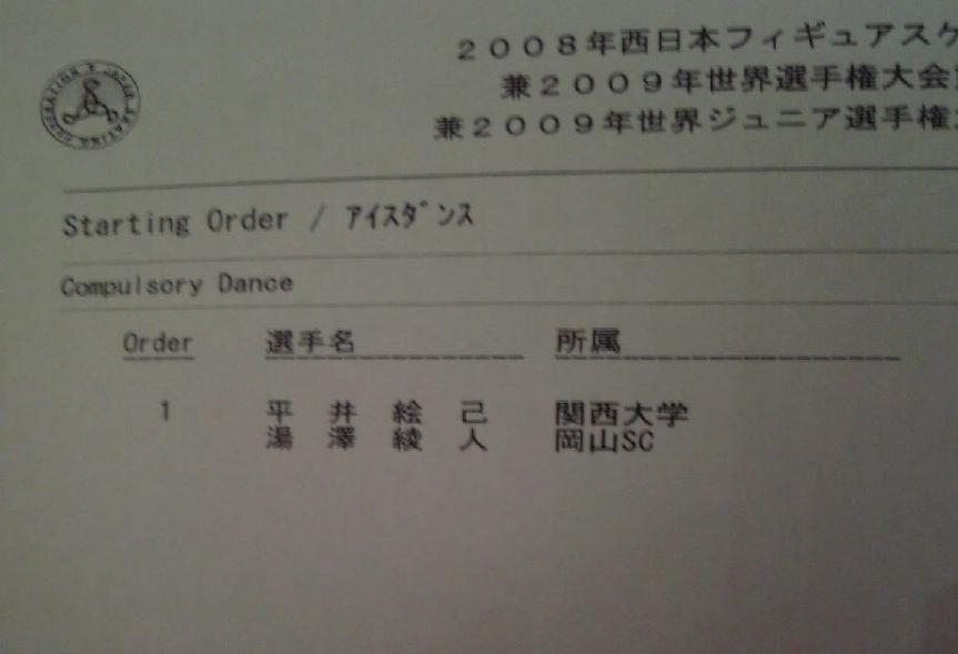 とりあえず滑走順。今日はジュニアとシニアのダンスCD、ジュニア男子SP、ダンスOD、シニア男子SP、シニア女子SPと盛りだくさんです♪(^◇^)