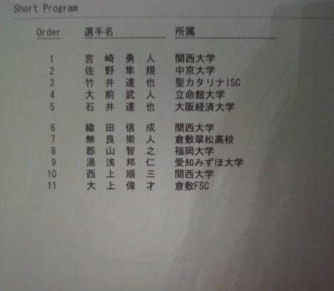 以上、男子ジュニアSP、予想どおり一位はタッキー、二位は吉田くんです。