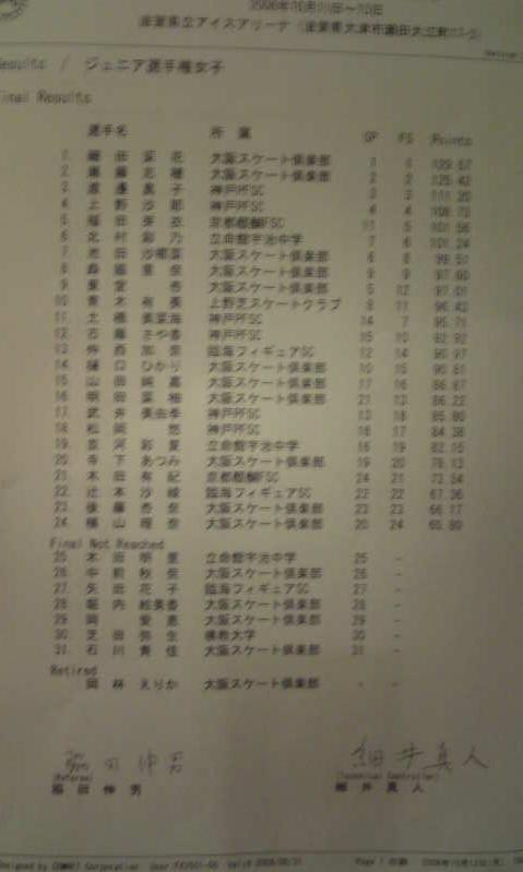 シニア女子順位(またまたピンボケ)  ジュニア男子順位