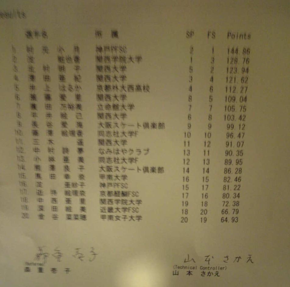 ちなみにジュニア男子とシニア男子はSPそのまま。シニア女子は小月ちゃん優勝、二位は淀さん、三位は北村明子ちゃんでした。